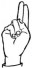 На ћирилици написано НИКОДИЈЕ ЧОМАГИЋ састоји се из 15 слова [?]. Исписано ћириличном једноручном азбуком за глувонеме: